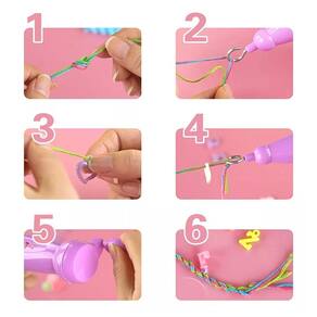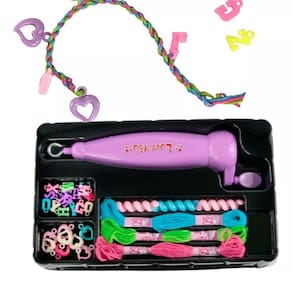 Com uma variedade de miçangas coloridas, acessórios para cabelo e uma máquina de trançar linha incluídos, é possível soltar a imaginação e criar lindos enfeites para os cabelos.