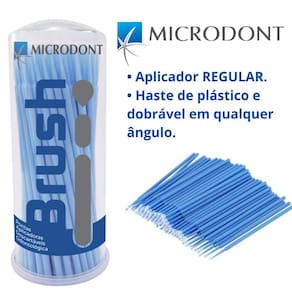 Os Aplicadores Descartáveis Microdont Brush são mais uma opção para os Consultórios Odontológicos para facilitar a vida dos profissionais habilitados durante a execução de procedimentos com evidenciadores de placa, dessensibilizantes, agentes adesivos, selantes, eugenol, soluções hemostáticas, condicionadores ácidos e fluoretos. Características Aplicador regular é identificado pela cor azul; Possui haste de plástico; A haste, bem como todo o cabo do aplicador, pode ser dobrada em qualquer angulação. Ean: 7898229859836
