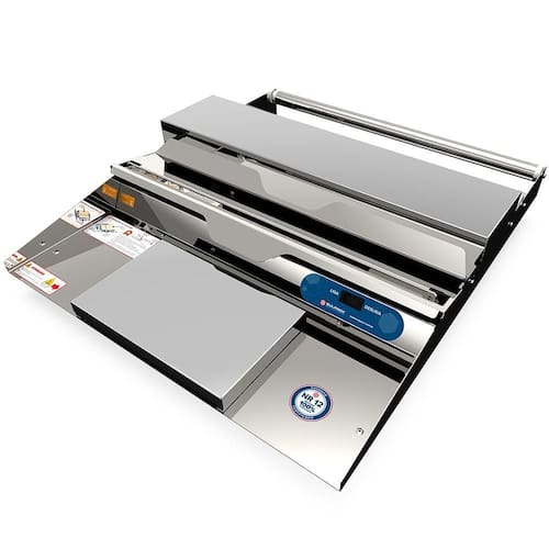 A máquina de aplicar filme é ideal para quem procura um equipamento rápido e prático para embalar alimentos, otimizando o trabalho da sua produção. É indicada para embalar alimentos de bandejas como: frutas, legumes, frios, carnes, farináceos, legumes e muito outros tipos de alimentos que são vendidos em bandejas. Este aplicador de filme é confeccionado inteiramente em aço inox 430 escovado e comporta bobinas de até 480mm de largura. Conta com um sistema de corte do plástico filme através de uma barra em inox, proporcionando mais praticidade ao embalar. Além disso, esta embaladora é equipada com um termostato interno acoplado, evitando o superaquecimento da placa da de selagem. Para maior segurança dos operadores, a máquina de embalar é equipada com um sistema de proteção e possui laudo NR12 em conformidade com as normas do Ministério do Trabalho.