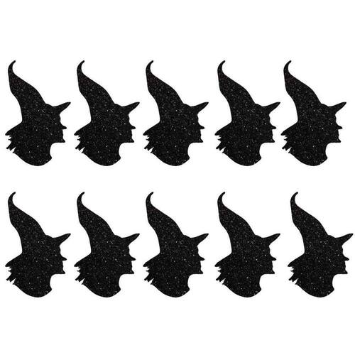 O aplique para lembrancinha Halloween Bruxa da marca SB Fábrica de Acessórios traz 10 unidades de silhuetas de bruxas, perfeitas para dar um toque mágico e misterioso às suas lembranças. Cada aplique apresenta a silhueta de uma bruxa com chapéu longo, adicionando um charme único e temático às suas comemorações.