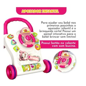 Apresentando o Apoiador Infantil com som e luz, Auxilia nos Primeiros Passinhos, uma inovação cuidadosamente projetada para acompanhar e estimular o desenvolvimento do seu bebê enquanto eles dão os primeiros passos rumo ao mundo exploratório que os espera. O Apoiador Infantil possui um painel interativo educativo que cativa a curiosidade natural do seu bebê. Repleto de cores vibrantes, formas envolventes e texturas táteis, este painel é um convite ao aprendizado sensorial. Cada toque e movimento do seu pequeno desencadeia uma nova descoberta, estimulando o desenvolvimento cognitivo e motor de maneira lúdica e envolvente.