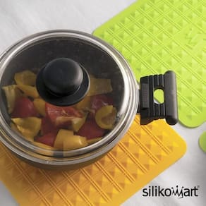 O suporte de panela de silicone da Silikomart é ideal para proteger suas mãos do calor, permitindo que você manuseie com segurança panelas, frigideiras e pratos quentes.