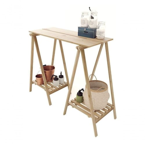 Cavaletes de madeira com estrados + 2 Tábua para fazer mesa e decoração 50 X 100 - KIT COM 2 UNIDADES.