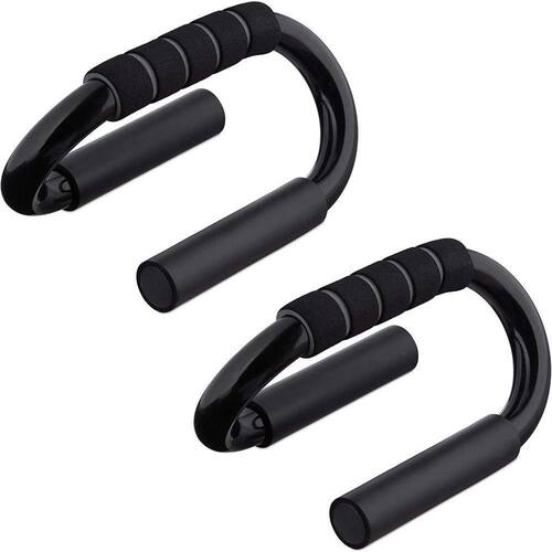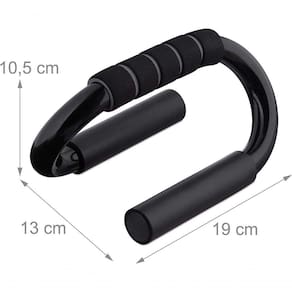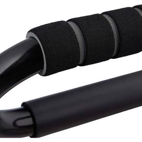 Apoio para flexão preto Ideal para exercícios de flexão de braço, o produto aumenta a amplitude dos exercícios, garantindo assim um trabalho intenso da região peitoral, ombros, costas, tríceps e bíceps. Descrições técnicas. O produto é feito em ferro fundido com os pegadores em espuma macia garantindo segurança e conforto durante o exercício Dimensões: 12 centímetros de altura e 15 centímetros de largura sendo que desses 10 centímetros são revestidos com espumas para mais conforto na pegada