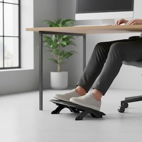 Desenvolvido para quem permanece longos períodos sentado, o Apoio Ergonômico para os Pés oferece alívio imediato da pressão nas pernas e favorece uma postura correta, contribuindo para reduzir dores, inchaços, formigamentos e até prevenir varizes. Seu design inteligente promove uma posição mais saudável para os pés e para a coluna, elevando o bem-estar e a performance no trabalho ou nos estudos.
