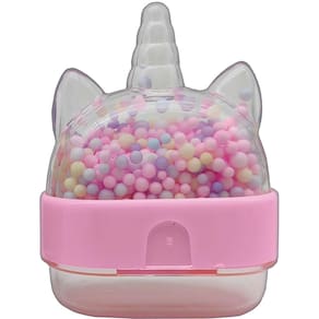 Este produto tem corpo plástico, com design de unicórnio, para adicionar um toque de fantasia aos seus materiais.