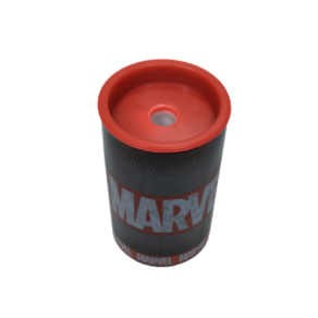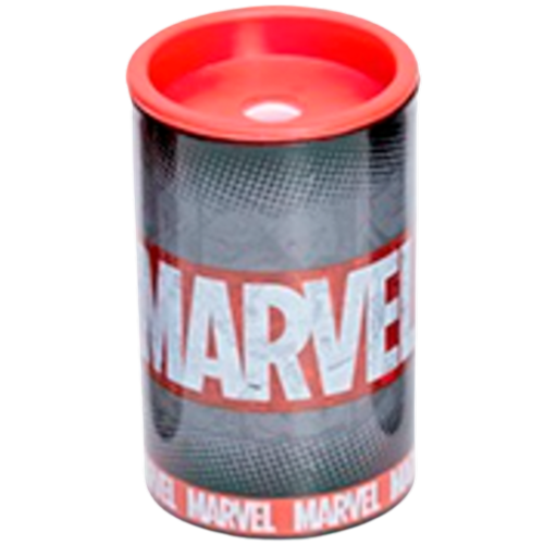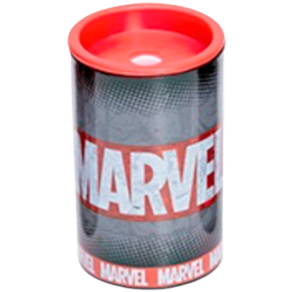 Apontador com depósito metálico com estampa dos Vingadores que inspiram o poder do trabalho em equipe, combinando suas habilidades únicas para enfrentar as ameaças que eles não poderiam enfrentar sozinhos.