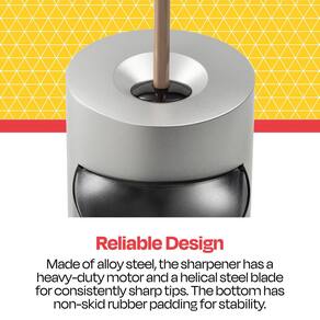 - Seriamente afiado: feito de liga de aço, o apontador de furo único tem um motor resistente e uma lâmina de aço helicoidal para garantir que seus lápis sejam afiados para uma ponta perfeita sempre, cerca de dois segundos após a inserção.
