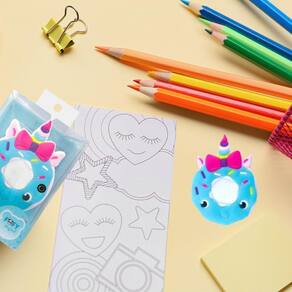 Torne a experiência de toque mágico e divertido com o Apontador Donuts Fofy ! Com design encantador de donuts unicórnio, este acessório criativo é ideal para quem ama itens de papelaria diferenciados. Ele possui um furo para lápis de tamanho padrão e capa emborrachada colorida, oferecendo precisão sem danificar os lápis. Além disso, é prático e estiloso, sendo perfeito para carregar no estojo e adicionar um toque de fofura ao seu material escolar!