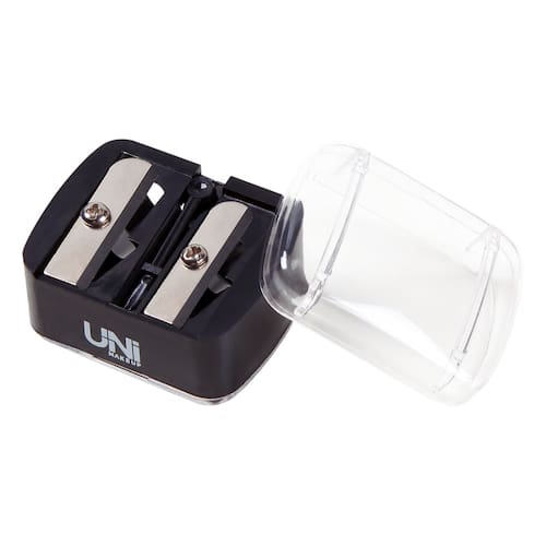 O Apontador Duplo UNI Makeup é ideal para apontar lápis de olho, labial e lápis sombra em dois tamanhos diferentes.