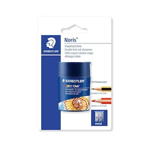 O Apontador da Staedtler vem com dois furos para lápis diferentes. Para lápis de: 8,2mm e 10,2mm. Com tampa articulada, evita que as apras sejam derramadas. Tampa com trava de segurança para evitar abertura acidental. Produzido na Alemanha.