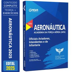 Apostila aeronáutica afa 2025 - oficiais aviadores, intendentes e de infantaria Apostila para aeronáutica - afa 2025 para o cargo de oficiais aviadores, intendentes e de infantaria -007mr-25-aeronautica-of-avia-int-inf-imp Concurso aeronáutica - afa 2025 Material elaborado de acordo com o edital de março/2025 Você pode imaginar como a sua vida vai melhorar depois que você conquistar a aprovação neste concurso púbico Pois é, mais cedo ou mais tarde, você será aprovado a e se tornará um funcionário público e, isso lhe trará a tão sonhada estabilidade profissional e financeira que tantos almejam. Esta apostila lhe ajudará nesta caminhada, pois, ela é elaborada conforme o edital. Características do produto - formato: impressa papel a4 - marca: nova concursos - autor: professores especializados - modelo: livro brochura - medidas 21x29cm - quantidade de páginas: 376 - edição: março/2025 A apostila concurso aeronáutica - afa 2025 - oficiais aviadores, intendentes e de infantaria contempla as seguintes matérias: Física Matemática Língua inglesa Língua portuguesa Conteúdo complementar: Redação discursiva 376 páginas