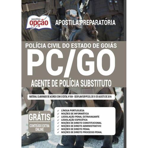 Apostila para Concurso PC-GO 2020 para o cargo de Agente de Polícia Substituto Características do Produto - Formato: Impressa Papel A4 - Marca: Apostilas Opção- Autor: Professores Especializados- Modelo: Livro Brochura - Medidas 21x29cm- Quantidade de Páginas: 706- Mês e Ano de Publicação: Maio/2020 A Apostila Concurso PC-GO 2020 - Agente de Polícia Substituto contempla as seguintes matérias: Língua PortuguesaNoções de InformáticaLegislação Penal ExtravaganteLegislação EspecíficaNoções de Direito ConstitucionalNoções de Direito AdministrativoNoções de Direito PenalNoções de Direito Processual Penal 706 Páginas - Está incluso com a Apostila: Português, Matemática e Raciocínio Lógico Ortografia, Mínimo Múltiplo Comum e Associações Lógicas