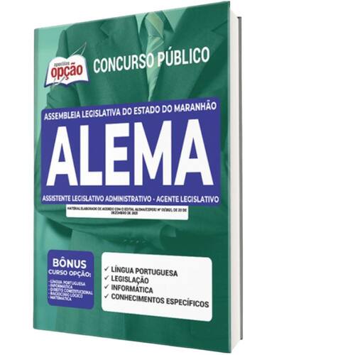 A Apostila Concurso ALEMA 2022 - Assistente Legislativo Administrativo - Agente Legislativo contempla as seguintes matérias: