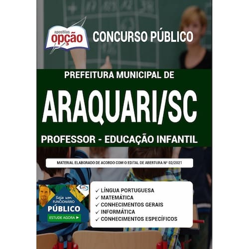 A Apostila Concurso Prefeitura de Araquari - SC 2021 - Professor - Educação Infantil contempla as seguintes matérias: