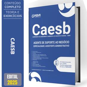 Apostila caesb 2025 - agente de suporte ao negócio - especialidade: assistente administrativo Apostila para caesb 2025 para o cargo de agente de suporte ao negócio - especialidade: assistente administrativo -012mr-25-caesb-agente-sup-ass-admin-imp Concurso caesb 2025 Material elaborado de acordo com o edital de março/2025 Você pode imaginar como a sua vida vai melhorar depois que você conquistar a aprovação neste concurso púbico Pois é, mais cedo ou mais tarde, você será aprovado a e se tornará um funcionário público e, isso lhe trará a tão sonhada estabilidade profissional e financeira que tantos almejam. Esta apostila lhe ajudará nesta caminhada, pois, ela é elaborada conforme o edital. Características do produto - formato: impressa papel a4 - marca: nova concursos - autor: professores especializados - modelo: livro brochura - medidas 21x29cm - quantidade de páginas: 450 - edição: março/2025 A apostila concurso caesb 2025 - agente de suporte ao negócio - especialidade: assistente administrativo contempla as seguintes matérias: Língua portuguesa Matemática e raciocínio lógico Informática Código de ética e conduta e integridade da caesb Regulamento de licitações e contratações da caesb Legislação de saneamento Conhecimentos do distrito federal e política para mulheres Noções de administração pública Redação oficial Conteúdo complementar Legislação Noções de arquivologia Noções de gestão de pessoas Noções de administração de recursos materiais 450 páginas Ean: 7908428811792