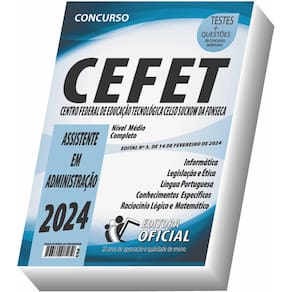 Cargo: assistente em administração Tipo: impressa Páginas: 362 Escolaridade: nível médio Órgão: ministério da educação - centro federal de educação tecnológica celso suckow da fonseca - edital nº 3, de 14 de fevereiro de 2024