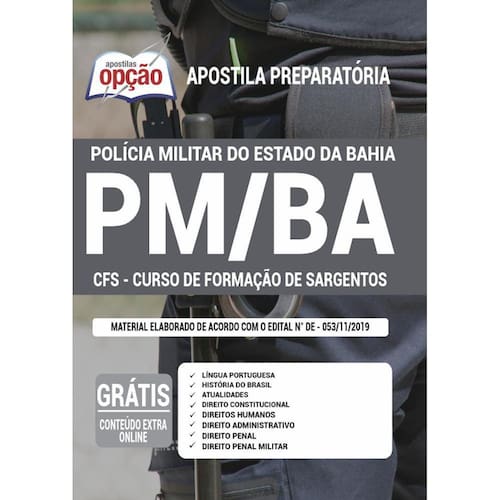 Apostila cfs pm ba - curso de formação de sargentos Apostila para concurso pm-ba 2021 para o cargo de curso de formação de sargentos Características do produto - formato: impressa papel a4 - marca: apostilas opção- autor: professores especializados- modelo: livro brochura - medidas 21x29cm- quantidade de páginas: 478- ano de publicação: 2021 A apostila concurso pm-ba 2021 - curso de formação de sargentos contempla as seguintes matérias:Língua portuguesaHistória do brasilAtualidadesDireito constitucionalDireitos humanosDireito administrativoDireito penalDireito penal militar 478 páginas