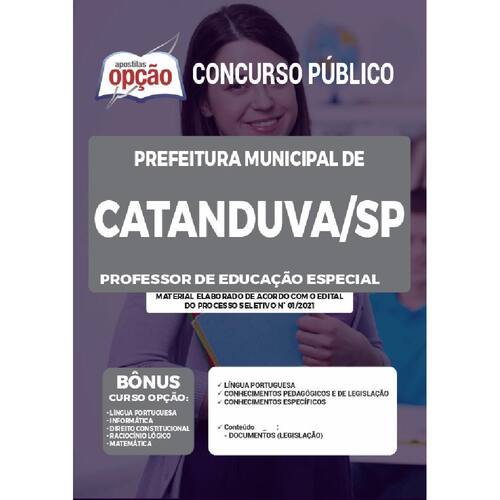 Invista no seu futuro como professor de Educação Especial e adquira agora mesmo a Apostila Catanduva SP - Professor de Educação Especial. Prepare-se com qualidade e conquiste a sua vaga no Concurso da Prefeitura de Catanduva - SP 2021.