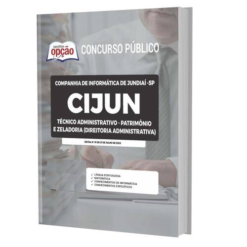 Apostila Concurso CIJUN SP 2023 - Patrimônio e Zeladoria apostila para CIJUN-SP 2023 para o cargo de Técnico Administrativo Júnior - Patrimônio e Zeladoria Diretoria Administrativa Op-053ag-23-cijun-sp-tec-adm-imp Concurso CIJUN-SP 2023 Você pode imaginar como a sua Vida vai Melhorar depois que você Conquistar a Aprovação neste Concurso Púbico Pois é, mais cedo ou mais tarde, você será Aprovado a e se tornará um Funcionário Público e, isso lhe trará a tão sonhada Estabilidade Profissional e Financeira que tantos almejam. Esta apostila lhe ajudará nesta caminhada, pois, ela é elaborada conforme o Edital. Características do Produto - Formato: Impressa Papel A4 - Marca: Apostilas Opção- Autor: Professores Especializados- Modelo: Livro Brochura - Medidas 21x29cm- Quantidade de Páginas: 102- Edição: Agosto/2023 A Apostila Concurso CIJUN-SP 2023 - Técnico Administrativo Júnior - Patrimônio e Zeladoria Diretoria Administrativa contempla as seguintes matérias: Língua PortuguesaMatemáticaConhecimentos de InformáticaConhecimentos Específicos 102 Páginas