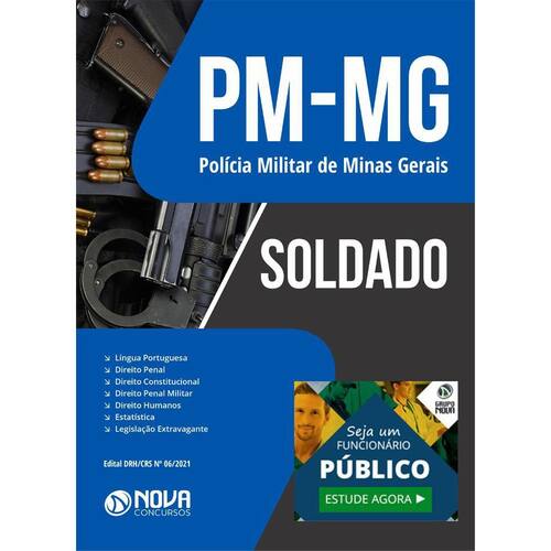 A Apostila Concurso PM-MG 2021 - Soldado contempla as seguintes matérias: Língua Portuguesa Direito Penal Direito Constitucional Direito Penal Militar Direito Humanos Estatística Legislação Extravagante