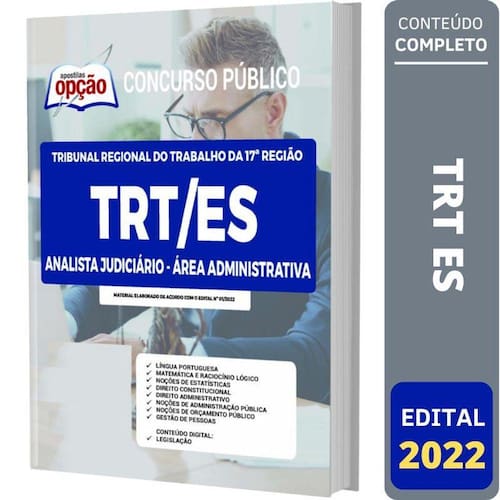 A Apostila para Analista Judiciário - Área Administrativa do concurso TRT-ES 2022 foi rigorosamente elaborada conforme o edital, o que torna o seu conteúdo completo e atualizado.