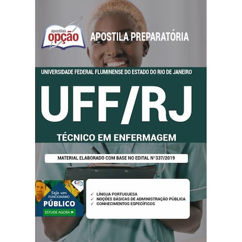 Apostila Concurso UFF RJ - Técnico em Enfermagem Apostila para Concurso UFF-RJ 2021 para o cargo de Técnico em Enfermagem Características do Produto - Formato: Impressa Papel A4 - Marca: Apostilas Opção- Autor: Professores Especializados- Modelo: Livro Brochura - Medidas 21x29cm- Quantidade de Páginas: 394- Ano de Publicação: 2021 A Apostila Concurso UFF-RJ 2021 - Técnico em Enfermagem contempla as seguintes matérias: Língua PortuguesaNoções Básicas de Administração PúblicaConhecimentos Específicos 394 Páginas