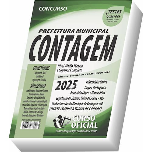 Edição impressa atualizada - elaborada por professores especializados em concursos públicos do curso oficial - são 25 anos de experiência e aprovação dedicados a você, . Cargos: cargos técnicos - laboratório - raio x - saúde bucal - segurança do trabalho - nível superior - administrador - analista de sistemas - assistente social - biólogo - bioquímico - cirurgião dentista - contador - enfermeiro - epidemiologista - farmacêutico bioquímico - fisioterapeuta - fonoaudiólogo - inspetor de saúde - médico - nutricionista - psicólogo - terapeuta ocupacional - veterinário Tipo: impressa Páginas: 240 Escolaridade: nível médio técnico e superior Órgão: secretaria municipal de saúde de contagem - edital nº01/2025, de 6 de agosto de 2025 Conteúdo do material: Informática básica Língua portuguesa Conhecimentos do município Raciocínio lógico e matemático Legislação do sistema de saúde parte comum a todos os cargos Marca: Não Informado Ean: 7908831304904