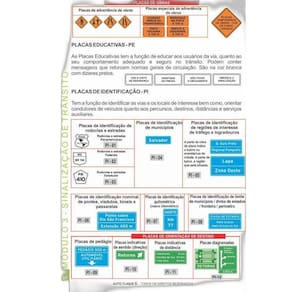 O manual contém 162 páginas e aborda as seguintes disciplinas: Legislação de trânsito / infrações e penalidades / sinalização de trânsito / conduta e circulação / direção defensiva / primeiros socorros / meio ambiente e convívio social / noções de mecânica - 2 e 4 rodas.