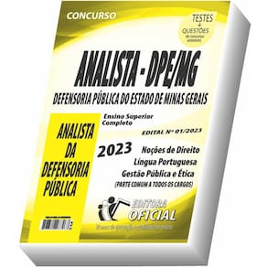 Edição Impressa Atualizada – Elaborada por professores especializados em concursos Públicos do Curso Oficial – São 23 anos de experiência e aprovação dedicados a você, candidato.Cargo: ANALISTA DA DEFENSORIA PÚBLICATipo: IMPRESSAPáginas: 266Escolaridade: Nível Superior CompletoÓrgão: DEFENSORIA PÚBLICA DO ESTADO DE MINAS GERAIS - Edital nº 01/2023Conteúdo do Material:NOÇÕES DE DIREITOLÍNGUA PORTUGUESAGESTÃO PÚBLICA E ÉTICAVOCÊ RECEBERÁ AINDA:Testes, provas e questões de concursos anteriores;Atualizações, se houver alguma mudança no edital;Prova do último concurso;Edital do Concurso. Ean: 7898682129248