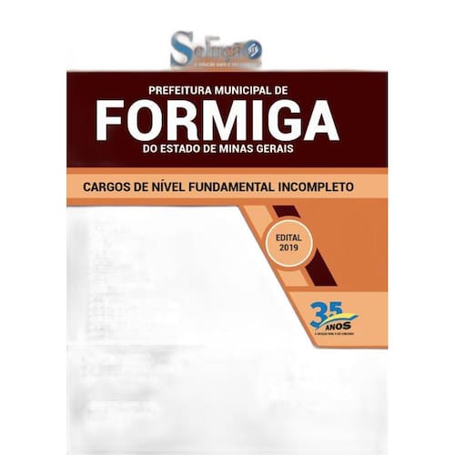 Apostila para Concurso Prefeitura de Formiga - MG 2019 para o cargo de Comum aos Cargos de Nível Fundamental Incompleto