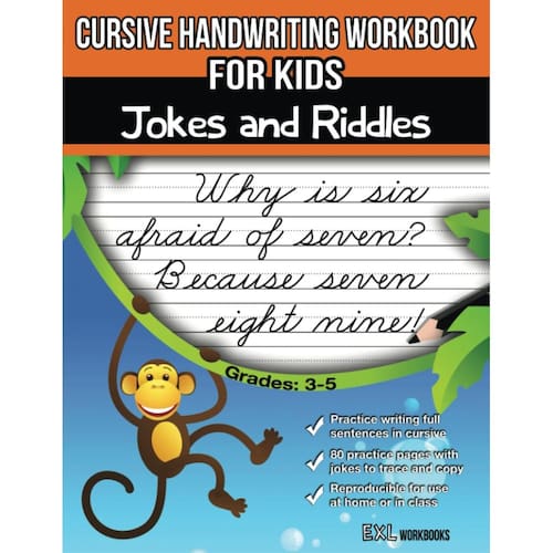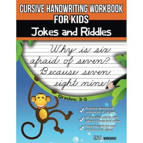 Livro de exercícios de caligrafia cursiva para crianças: piadas e enigmas
