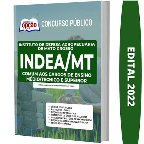 A Apostila Concurso INDEA-MT 2022 - Comum aos Cargos de Ensino Médio/Técnico e Superior contempla as seguintes matérias: