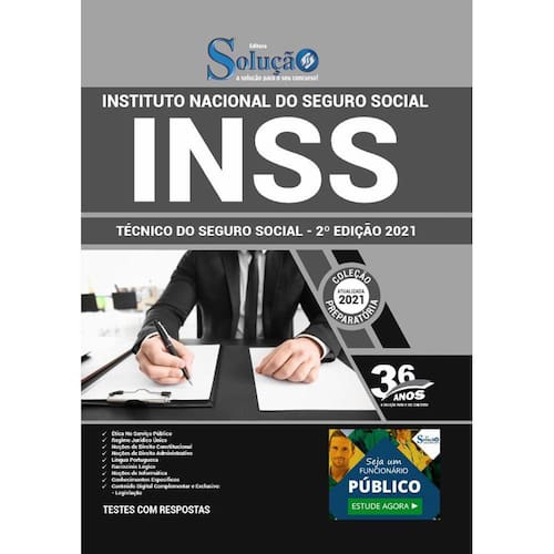 Apostila INSS - Técnico Do Seguro Social do Inss Apostila para Concurso INSS 2021 para o cargo de Técnico do Seguro Social 2º Edição Características do Produto - Formato: Impressa Papel A4 - Marca: Editora Solução- Autor: Professores Especializados- Modelo: Livro Brochura - Medidas 21x29cm- Quantidade de Páginas: 374- Ano de Publicação: 2021 A Apostila Concurso INSS 2021 - Técnico do Seguro Social 2º Edição contempla as seguintes matérias: Ética no Serviço PúblicoRegime Jurídico ÚnicoNoções de Direito ConstitucionalNoções de Direito AdministrativoLíngua PortuguesaRaciocínio LógicoNoções de InformáticaConhecimentos EspecíficosConteúdo Complementar e Exclusivo: Legislação 374 Páginas Marca: Editora Solucao