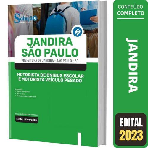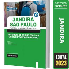Apostila Jandira SP - Motorista de Ônibus Escolar Apostila para Prefeitura de Jandira - SP 2023 para o cargo de Motorista de Ônibus Escolar e Motorista Veículo Pesado
