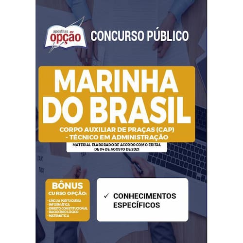 A Apostila Concurso Marinha do Brasil 2021 - Corpo Auxiliar de Praças CAP - Técnico em Administração contempla as seguintes matérias:
