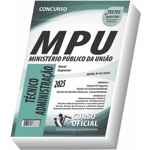 Edição impressa atualizada - elaborada por professores especializados em concursos públicos do curso oficial - são 23 anos de experiência e aprovação dedicados a você, . Cargo: técnico de administração Tipo: impressa Páginas: 455 Escolaridade: nível superior Órgão: ministério público da união - edital 01/2025 Conteúdo do material: Língua portuguesa Administração pública Noções de direito penal Legislação institucional Teoria geral do processo Noções de sustentabilidade Noções de direito administrativo Noções de direito constitucional Administração financeira e orçamentária Noções de direitos humanos e acessibilidade Você receberá ainda: Testes, provas e questões de concursos anteriores; Atualizações, se houver alguma mudança no edital; Prova do último concurso; Edital do concurso. Marca: Não Informado