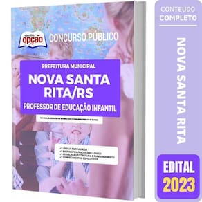 Apostila Nova Santa Rita Rs - Professor Educação Infantil Apostila para Prefeitura de Nova Santa Rita - RS 2023 para o cargo de Professor Educação Infantil Op-082fv-23-nova-santa-rs-prof-infan-imp Concurso Prefeitura de Nova Santa Rita - RS 2023 Você pode imaginar como a sua Vida vai Melhorar depois que você Conquistar a Aprovação neste Concurso Púbico Pois é, mais cedo ou mais tarde, você será Aprovado a e se tornará um Funcionário Público e, isso lhe trará a tão sonhada Estabilidade Profissional e Financeira que tantos almejam. Esta apostila lhe ajudará nesta caminhada, pois, ela é elaborada conforme o Edital. Características do Produto - Formato: Impressa Papel A4 - Marca: Apostilas Opção- Autor: Professores Especializados- Modelo: Livro Brochura - Medidas 21x29cm- Quantidade de Páginas: 434- Edição: Fevereiro/2023 A Apostila Concurso Prefeitura de Nova Santa Rita - RS 2023 - Professor Educação Infantil contempla as seguintes matérias: Língua PortuguesaMatemática/raciocínio LógicoLegislação/estrutura/funcionamentoConhecimentos Específicos 434 Páginas