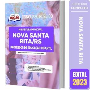Apostila Nova Santa Rita Rs - Professor Educação Infantil Apostila para Prefeitura de Nova Santa Rita - RS 2023 para o cargo de Professor Educação Infantil Op-082fv-23-nova-santa-rs-prof-infan-imp Concurso Prefeitura de Nova Santa Rita - RS 2023 Você pode imaginar como a sua Vida vai Melhorar depois que você Conquistar a Aprovação neste Concurso Púbico Pois é, mais cedo ou mais tarde, você será Aprovado a e se tornará um Funcionário Público e, isso lhe trará a tão sonhada Estabilidade Profissional e Financeira que tantos almejam. Esta apostila lhe ajudará nesta caminhada, pois, ela é elaborada conforme o Edital. Características do Produto - Formato: Impressa Papel A4 - Marca: Apostilas Opção- Autor: Professores Especializados- Modelo: Livro Brochura - Medidas 21x29cm- Quantidade de Páginas: 434- Edição: Fevereiro/2023 A Apostila Concurso Prefeitura de Nova Santa Rita - RS 2023 - Professor Educação Infantil contempla as seguintes matérias: Língua PortuguesaMatemática/raciocínio LógicoLegislação/estrutura/funcionamentoConhecimentos Específicos 434 Páginas