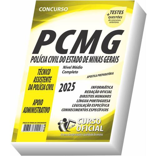Edição impressa atualizada - elaborada por professores especializados em concursos públicos do curso oficial - são 25 anos de experiência e aprovação dedicados a você, . Cargos: técnico assistente da polícia civil - apoio administrativo Tipo: impressa Páginas: 240 Escolaridade: nível médio Órgão: pcmg - polícia civil do estado de minas gerais - academia de polícia civil Conteúdo do material: Informática Redação oficial Direitos humanos Língua portuguesa Legislação específica Conhecimentos específicos Você receberá ainda: Testes, provas e questões de concursos anteriores; Atualizações, se houver alguma mudança no edital; Prova do último concurso; Edital do concurso.
