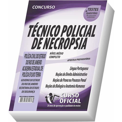 Edição impressa atualizada - elaborada por professores especializados em concursos públicos do curso oficial - são 25 anos de experiência e aprovação dedicados a você, . Cargo: técnico policial de necropsia de 3 classe Tipo: impressa Páginas: 176 Escolaridade: ensino médio completo Órgão: governo do estado do rio de janeiro - secretaria de estado de segurança pública - polícia civil do estado do rio de janeiro - academia estadual de polícia silvio terra Conteúdo do material: Língua portuguesa Noções de direito administrativo Noções de prova no processo penal Noções básicas de biologia e anatomia humanas Você receberá ainda: Testes, provas e questões de concursos anteriores; Atualizações, se houver alguma mudança no edital; Prova do último concurso; Edital do concurso. Marca: Não Informado