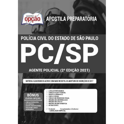 A Apostila Concurso PC-SP 2021 - Agente Policial 2 Edição contempla as seguintes matérias: Língua Portuguesa Constituição Federal Direitos Humanos Código Penal Código de Processo Penal Noções de Criminologia Noções de Lógica Noções de Informática Atualidades Conteúdo Complementar e Exclusivo: Legislação Especial