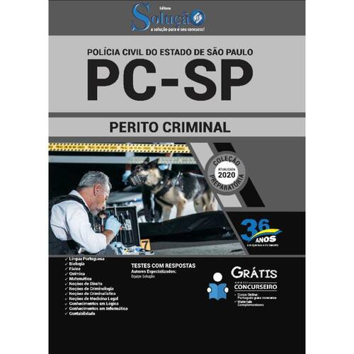 Apostila para Concurso PC-SP 2020 para o cargo de Perito Criminal Você pode imaginar como a sua Vida vai Melhorar depois que você Conquistar a Aprovação neste Concurso Púbico Pois é, mais cedo ou mais tarde, você será Aprovado a e se tornará um Funcionário Público e, isso lhe trará a tão sonhada Estabilidade Profissional e Financeira que tantos almejam. Esta apostila lhe ajudará nesta caminhada, pois, ela é elaborada conforme o Edital. Características do Produto - Formato: Impressa Papel A4 - Marca: Editora Solução- Autor: Professores Especializados- Modelo: Livro Brochura - Medidas 21x29cm- Quantidade de Páginas: 486- Ano de Publicação: 2020 A Apostila Concurso PC-SP 2020 - Perito Criminal Contempla as seguintes matérias: Língua Portuguesa;Biologia;Física;Química;Matemática;Noções de Direito;Noções de Criminologia;Noções de Criminalística;Noções de Medicina Legal;Conhecimentos em Lógica;Conhecimentos em Informática;Contabilidade. 486 Páginas - Está incluso com a Apostila: Curso OnlineMateriais Complementares A Apostila para Perito Criminal do concurso PC-SP 2020 foi rigorosamente elaborada conforme o edital, o que torna o seu conteúdo completo e atualizado.O conteúdo da Apostila e distribuído de forma interativa e simplificada, justamente para facilitar os seus estudos. Marca: Editora Solucao