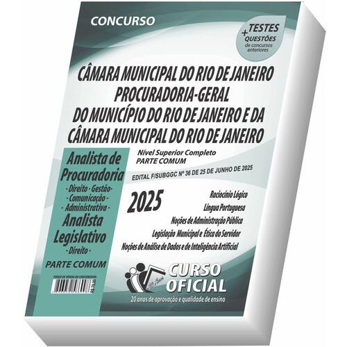 Edição impressa atualizada - elaborada por professores especializados em concursos públicos do curso oficial - são 25 anos de experiência e aprovação dedicados a você, . Cargos: Cargos da procuradoria - geral do município - pgm - analista de procuradoria - especialidade direito Analista de procuradoria - especialidade gestão - analista de procuradoria - especialidade comunicação - analista de procuradoria - especialidade administrativa Cargos da procuradoria-geral da câmara municipal do rio de janeiro - analista de procuradoria Cargos da câmara municipal do rio de janeiro - analista legislativo - especialidade direito Tipo: impressa Páginas: 250 Escolaridade: nível superior Órgão: câmara municipal do rio de janeiro - procuradoria-geral do município do rio de janeiro - procuradoria-geral da câmara municipal do rio de janeiro - edital f/subggc nº 36, de 25 de junho de 2025 Conteúdo do material: Conhecimentos gerais Raciocínio lógico Língua portuguesa Noções de administração pública Legislação municipal e ética do servidor Noções de análise de dados e de inteligência artificial parte comum a todos os cargos Você receberá ainda: Testes, provas e questões de concursos anteriores. Marca: Não Informado Ean: 7908831304461