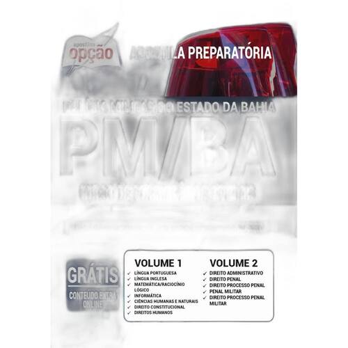 A Apostila Concurso PM-BA 2021 - Curso de Formação de Oficiais contempla as seguintes matérias: - Volume 1: Língua Portuguesa Língua Inglesa Matemática/raciocínio Lógico Informática Ciências Humanas Direito Constitucional Direitos Humanos - Volume 2: Direito Administrativo Direito Penal Direito Processo Penal Penal Militar Direito Processo Penal Militar