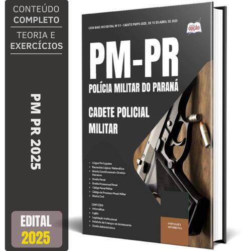A apostila concurso pm-pr 2025 - cadete policial militar contempla as seguintes matérias: