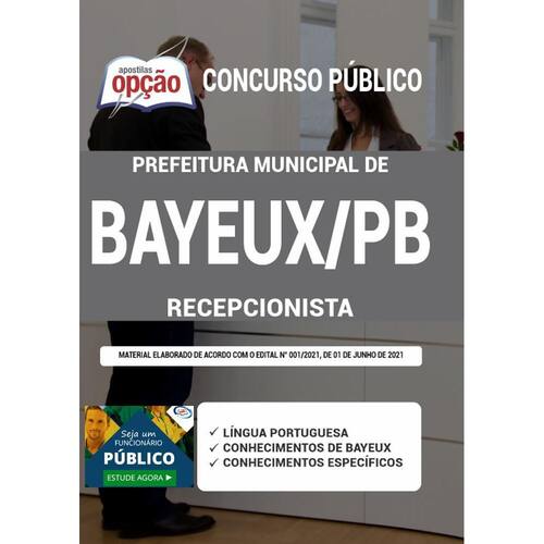 Apostila Prefeitura Bayeux PB - Recepcionista Apostila para Concurso Prefeitura de Bayeux - PB 2021 para o cargo de Recepcionista