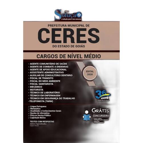 A Apostila Concurso Prefeitura de Ceres - GO 2020 - Cargos de Nível Médio Contempla as seguintes matérias: