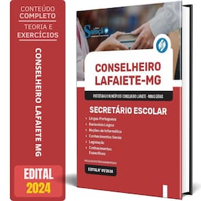 Apostila Prefeitura de Conselheiro Lafaiete MG 2024 - Secretário Escolar Apostila para Prefeitura de Conselheiro Lafaiete - MG 2024 para o cargo de Secretário Escolar