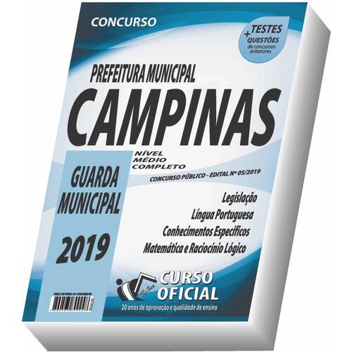 Edição impressa atualizada 2019 - elaborada por professores especializados em concursos públicos do curso oficial - são 20 anos de experiência e aprovação dedicados a você, candidato. Cargo: guarda municipal Tipo: impressa Páginas: 194 Edição: 2019 Escolaridade: ensino médio completo Órgão: prefeitura municipal de campinas - edital nº 05/2019 Formato: a4 Volume: 01 Edição: 2ª edição Idioma: português Ano de lançamento: 2019 Capa: couchê duro Editora: curso oficial Conteúdo do material: Legislação Língua portuguesa Conhecimentos específicos Matemática e raciocínio lógico Você receberá ainda: Testes, provas e questões de concursos anteriores; Atualizações, se houver alguma mudança no edital; Prova do último concurso; Edital do concurso.